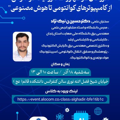 هفته پژوهش و فناوری گرامی باد. ⚡️رویداد علمی ویژه اساتید و دانشجویان ⚡️ 💢 “مرزهای نوظهور الکترونیک کوانتومی: از کامپیوترهای…