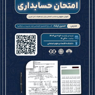 کلاس آمادگی امتحان اصول حسابداری 1 ویژه دانشجویان مدیریت بازرگانی، اقتصاد و حسابداری زمان برگزاری : شنبه و یکشنبه 6…