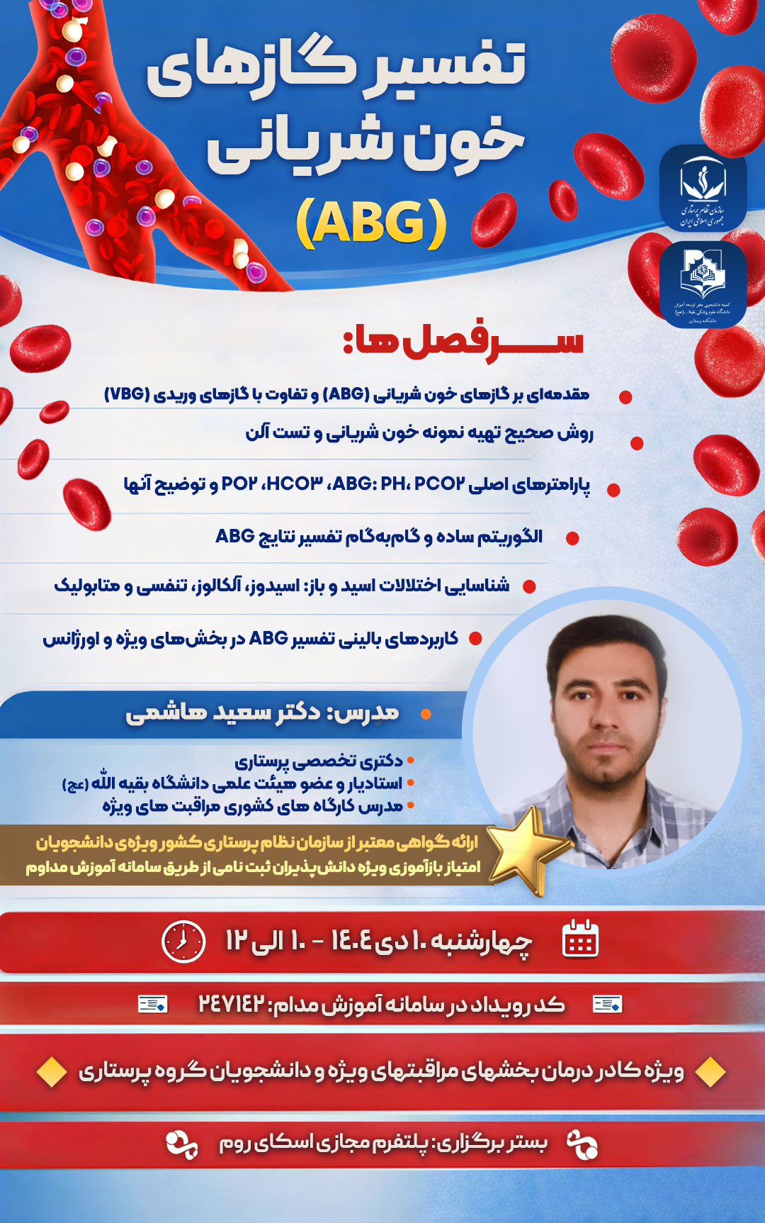 🎯 مخاطب هدف : کادر درمان شاغل در بخش های مراقبت ویژه و دانشجویان گروه پرستاری