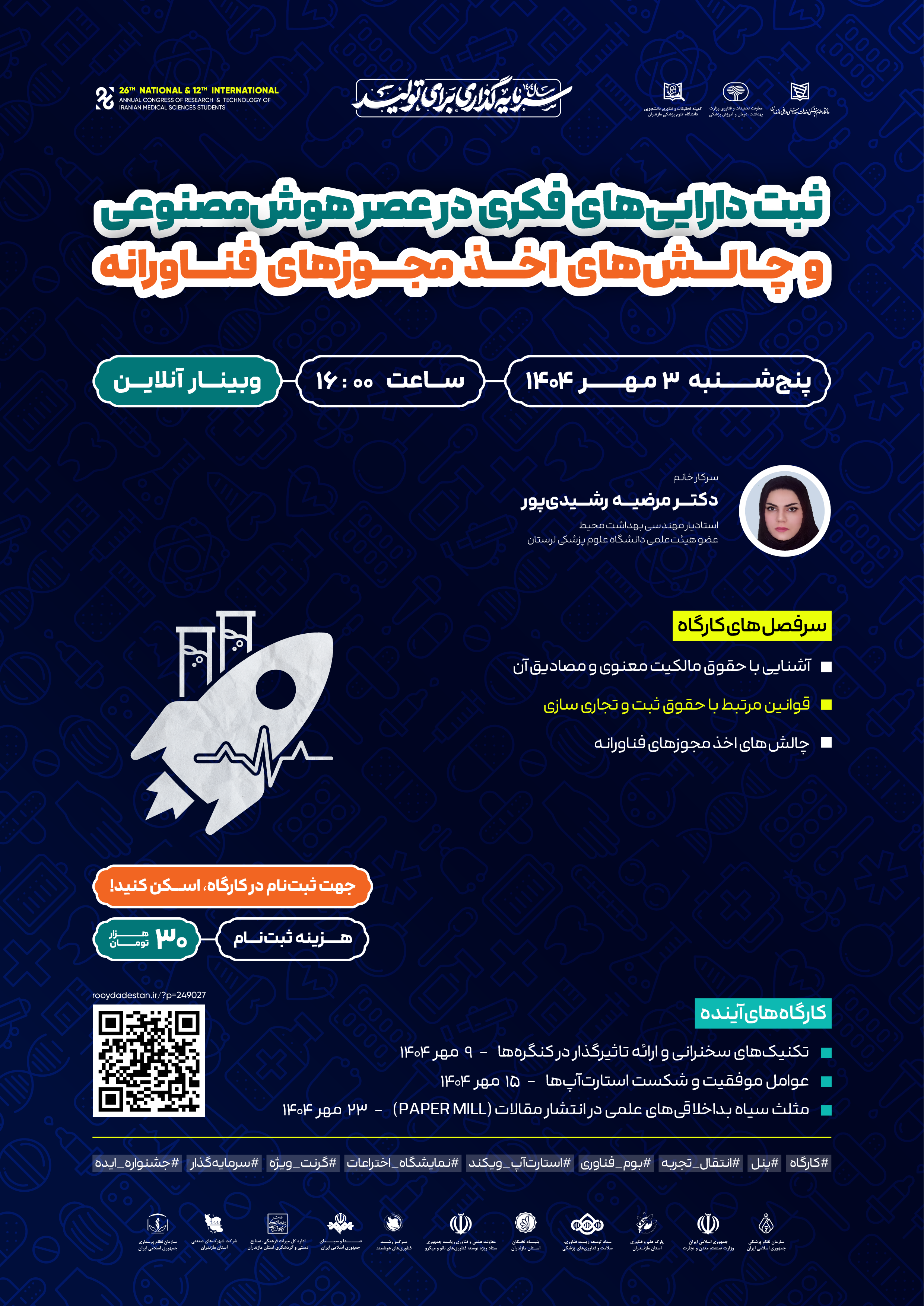 این کارگاه توسط بیست و ششمین کنگره ملی و دوازدهمین کنگره بینالمللی سالیانه پژوهش و فناوری دانشجویان علوم پزشکی کشور برگزار میشود.