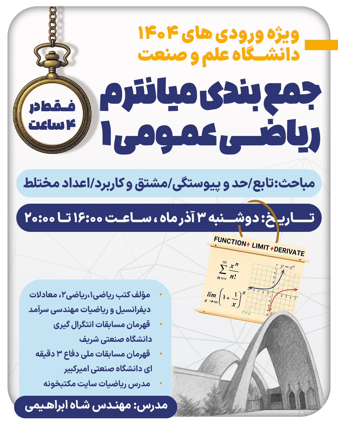 جمع بندی میانترم ریاضی1 دانشگاه علم و صنعت پاییز 1404 فعال از 1404/08/29 تا 1404/09/06