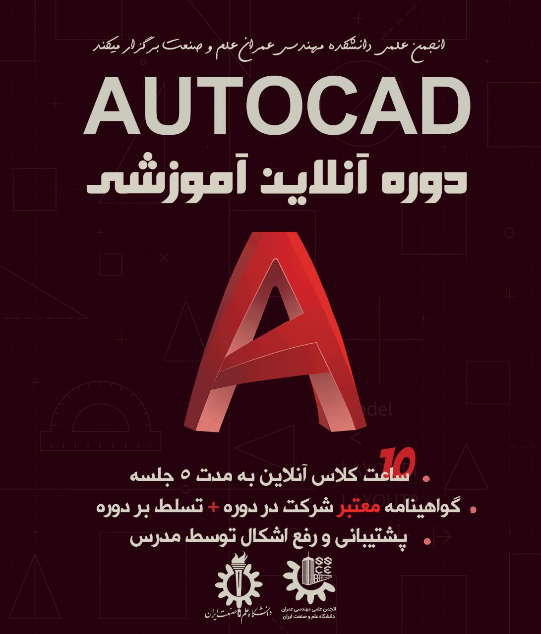 🎓 دوره آموزشی AUTOCAD 📍 برگزارکننده: انجمن علمی عمران دانشگاه علم و صنعت ایران 🎙 مدرس: جناب مهندس محمودی 🕒 مدت زمان دوره: 10 ساعت (5 جلسه) پنجشنبه و جمعه ساعت 14 تا 16 📚 سطح دوره: از مقدماتی تا کاربردی 📜 همراه با ارائه مدرک معتبر و مدرک تسلط بر دوره