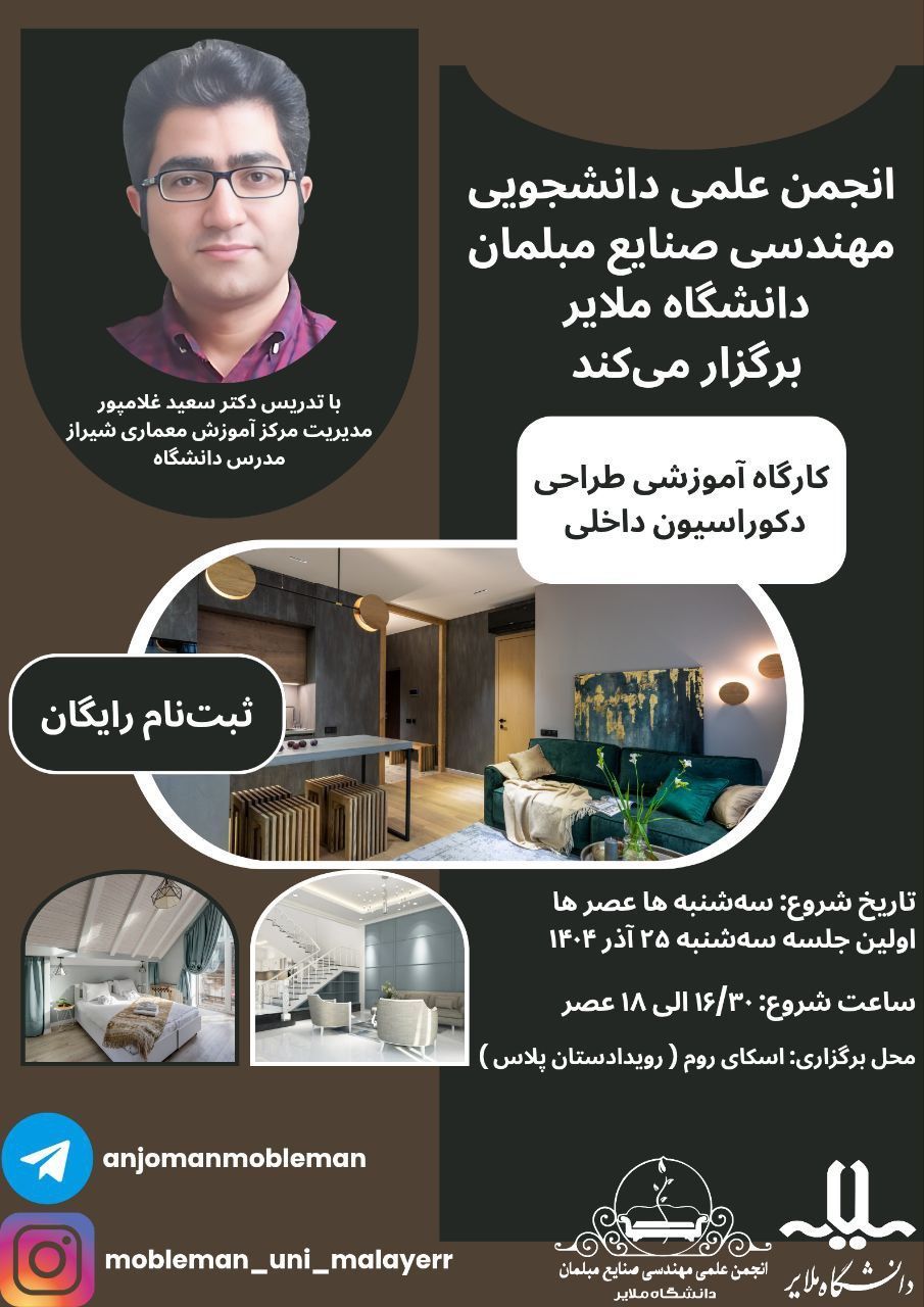 📣 انجمن علمی دانشجویی مهندسی صنایع مبلمان دانشگاه ملایر برگزار میکند: