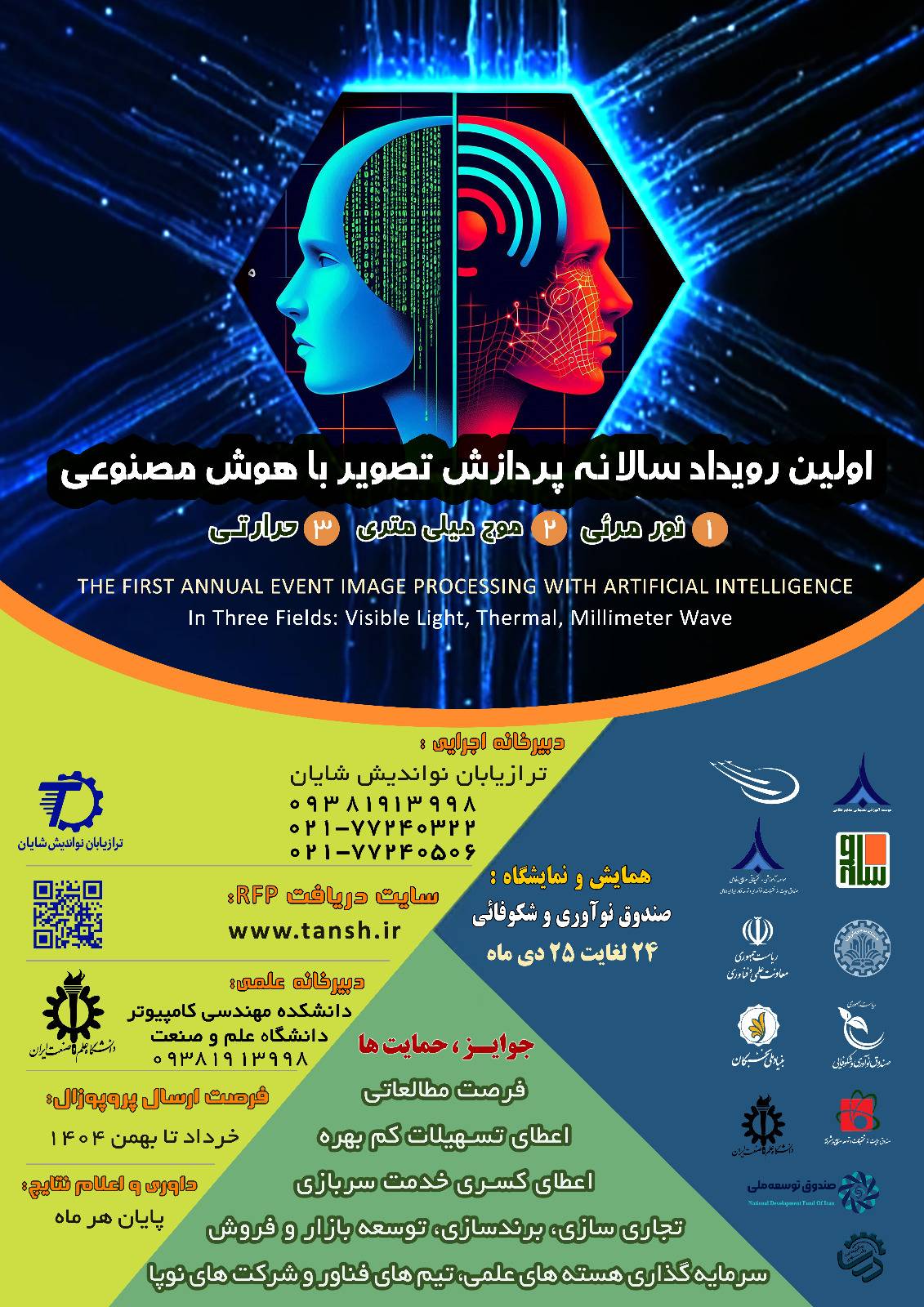 رویداد هوش مصنوعی با استفاده از پردازس تصویر در سه حوزه نور مریی - موج میلی متر و حرارتی برگزار میگردد RFP در سایت TANSH.IR بارگذاری شده اند شرکت های فناور و هسته های فناور میتوانند پروپزال بر اساس RFP ها تهیه و در سایت شرکت آپلود کنند بعد از داوری جوایز ارزنده نقدی و حمایت های مالی به شرکت ها و هسته های فناور تعلق خواهد گرفت