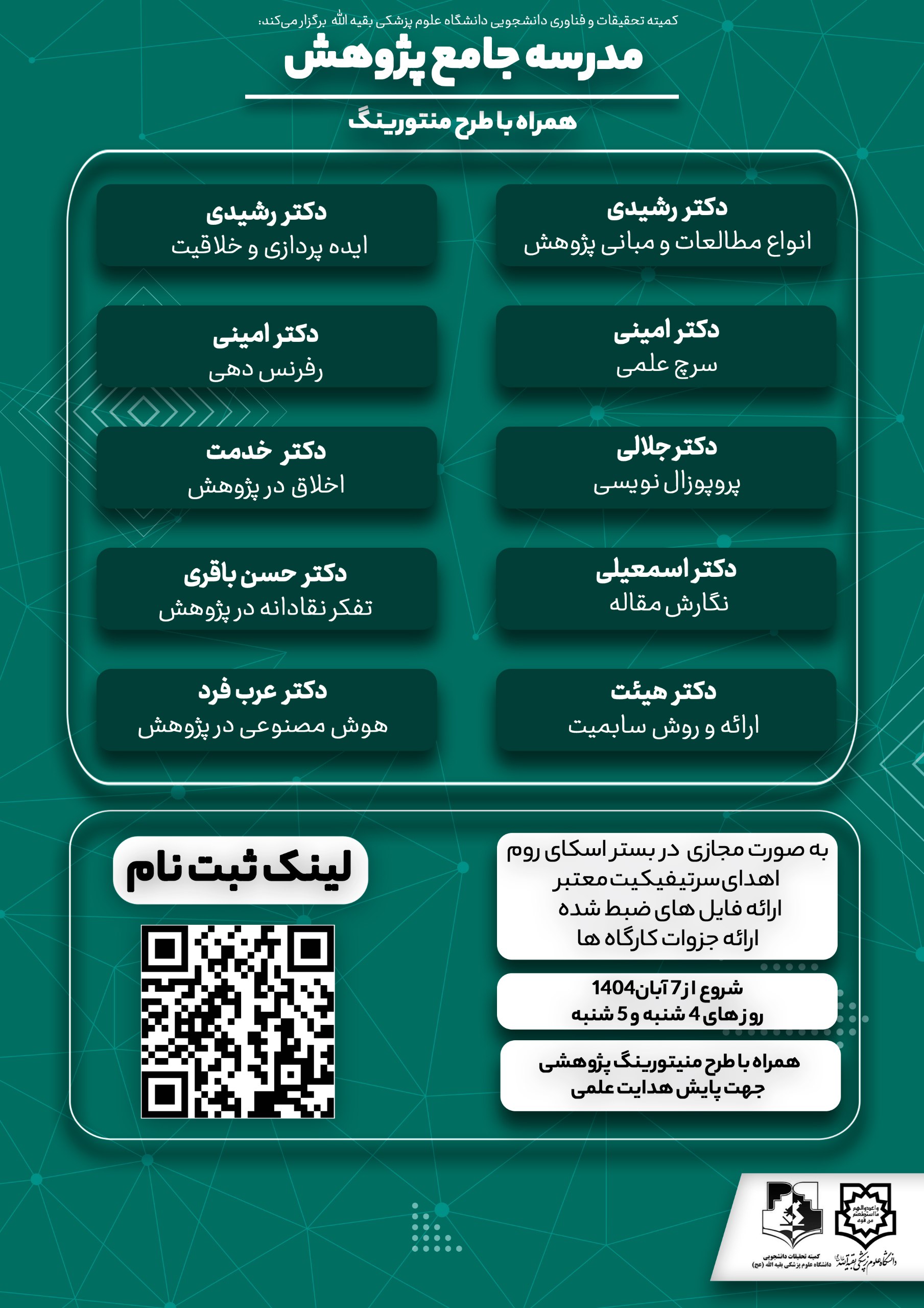 🎓 این مدرسه فرصتیست برای یادگیری عمیق و هدفمند پژوهش، همراه با طرح منیتورینگ پژوهشی؛