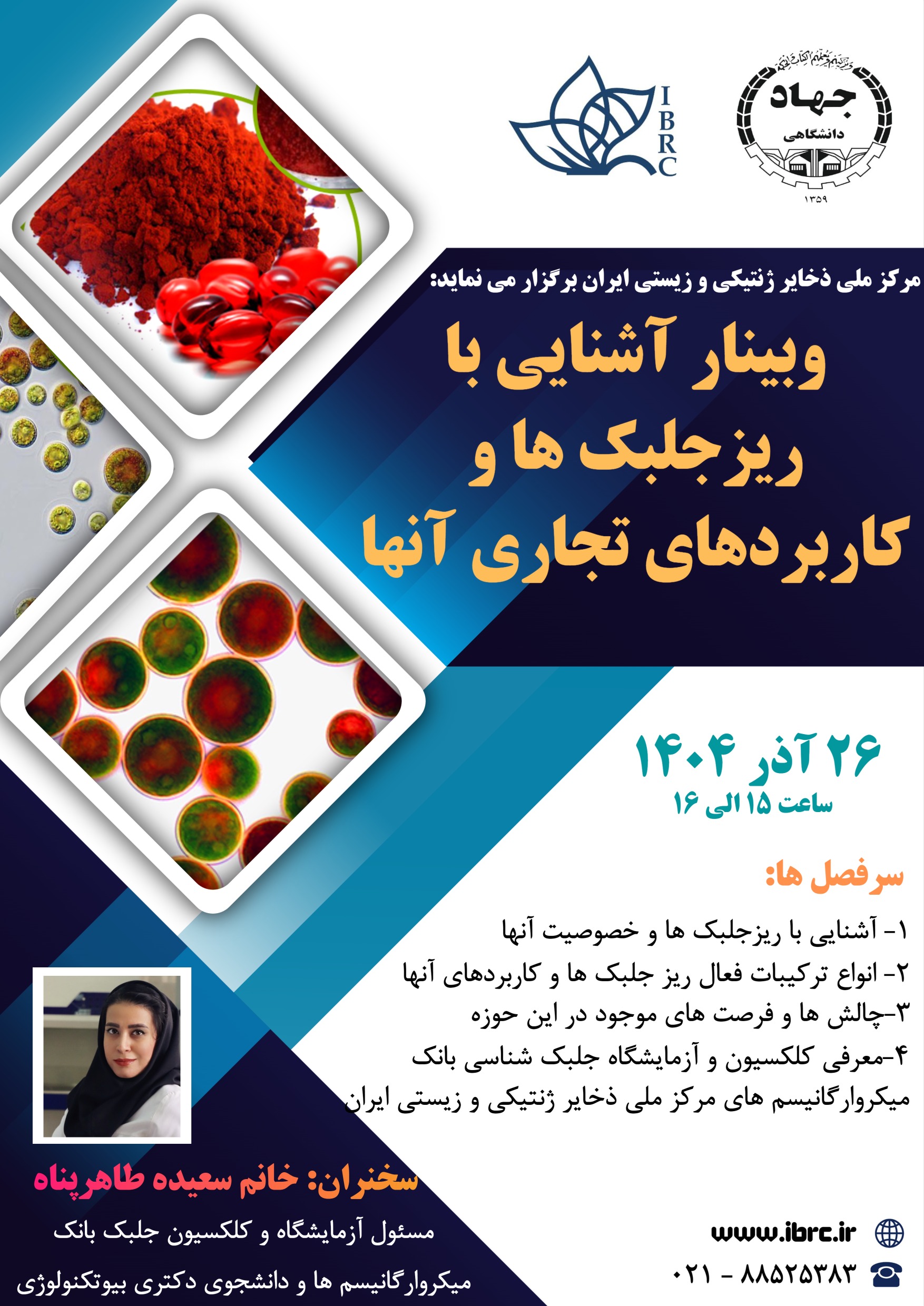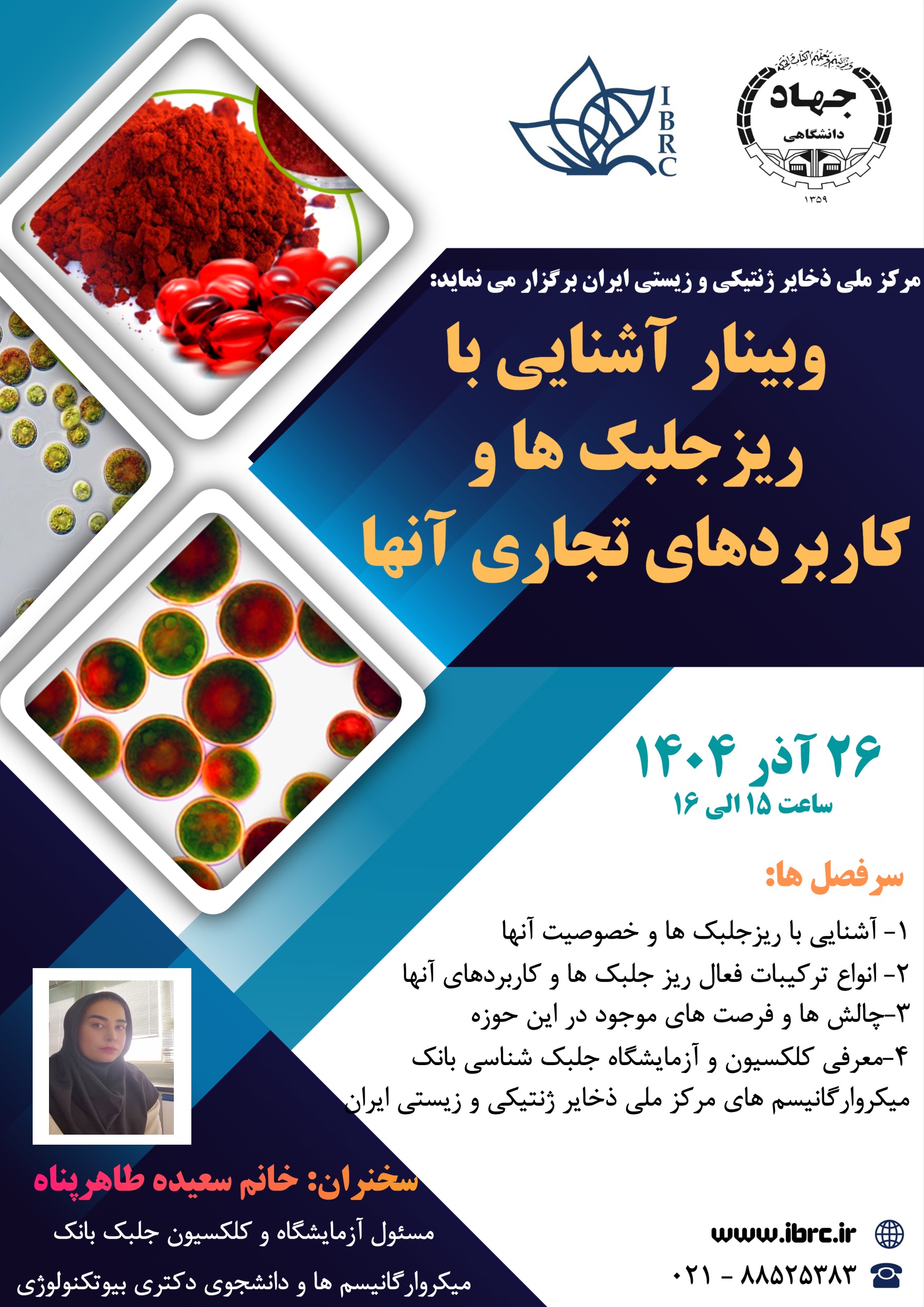 4- معرفی کلکسیون و آزمایشگاه جلبک شناسی بانک میکروارگانیسم های مرکز ملی ذخایر ژنتیکی و زیستی ایران