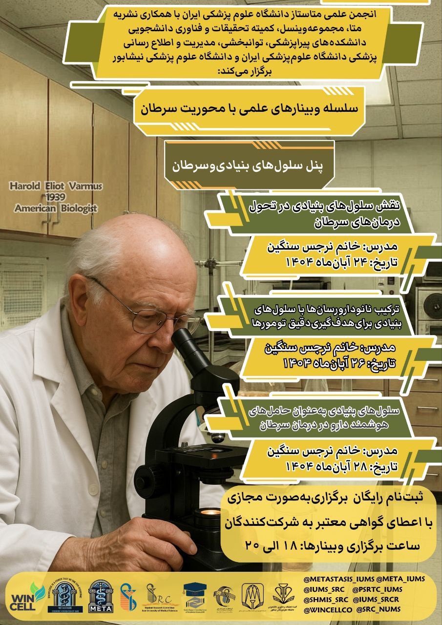 ۲۸ آبان، ساعت ۱۸ الی ۲۰سلولهای بنیادی بهعنوان حاملهای هوشمند دارو در درمان سرطان
