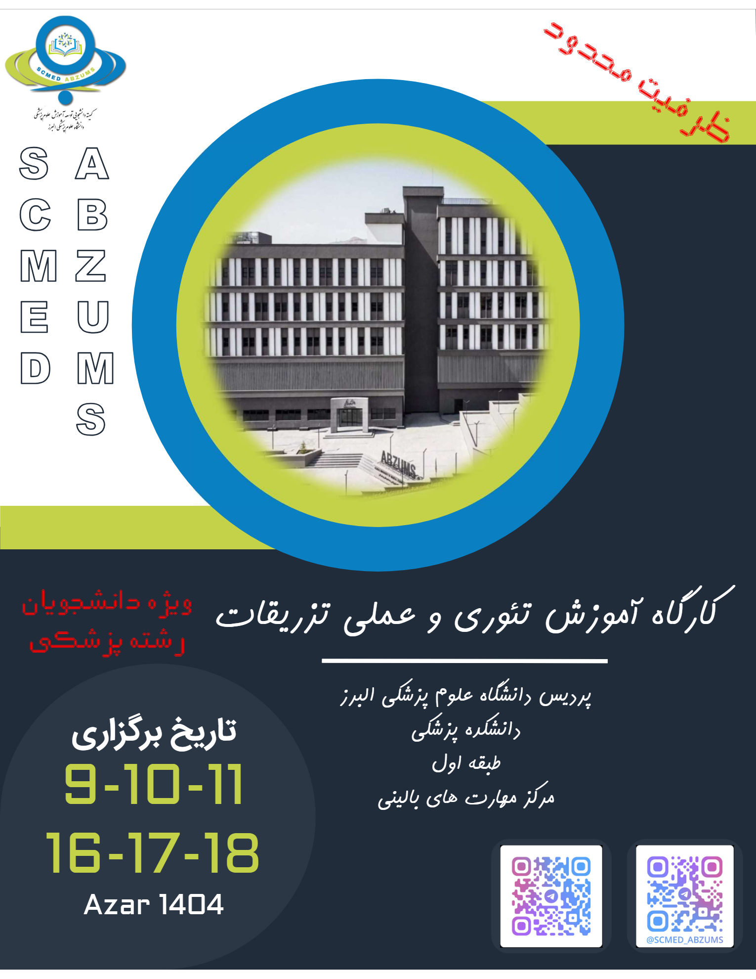 📍مکان برگزاری: پردیس دانشگاه علوم پزشکی البرز، دانشکده پزشکی، طبقه اول، مرکز مهارت های بالینی