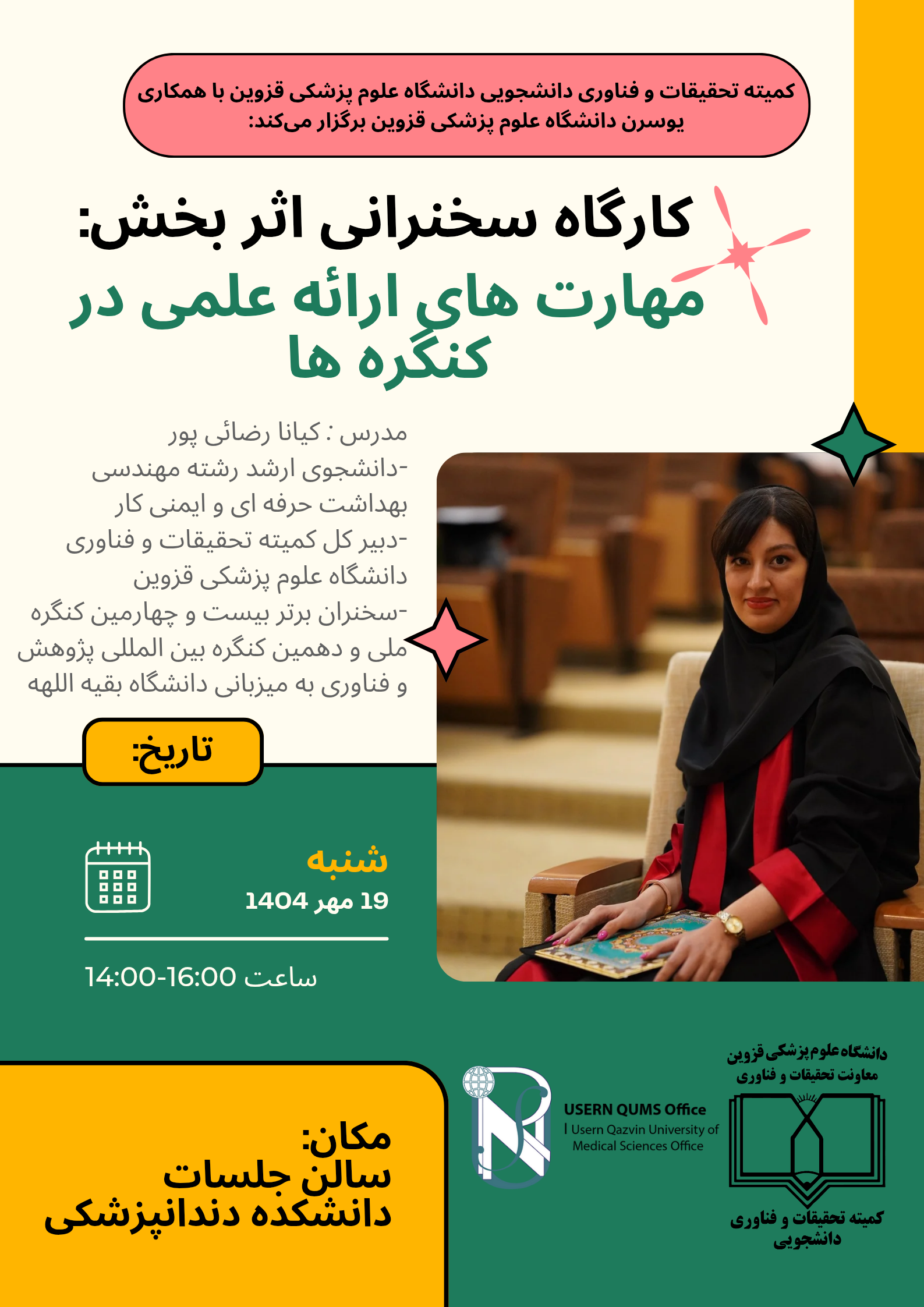 🧠✨ کمیته تحقیقات و فناوری دانشگاه علوم پزشکی قزوین با همکاری یوسرن دانشگاه علوم پزشکی قزوین برگزار میکند: