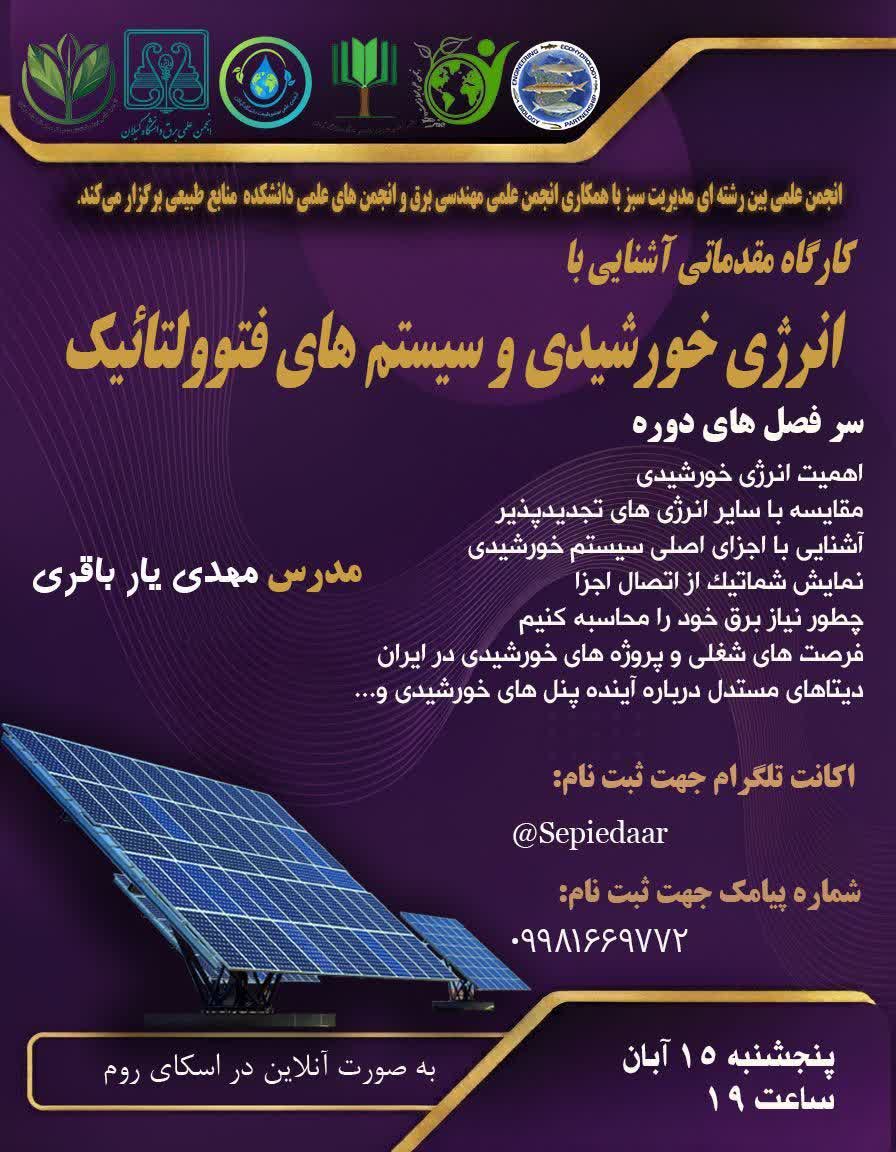 کارگاه مقدماتی آشنایی با انرژی خورشیدی و سیستم‌های فتوولتائیک