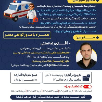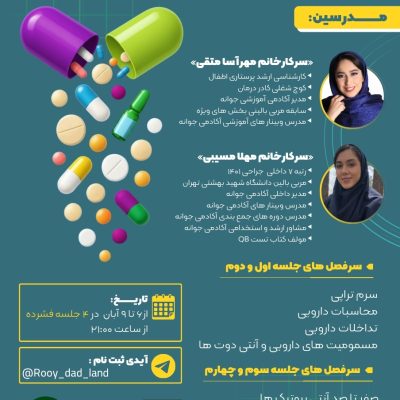 به مدت ۱۰ جلسه شروع دوره از ۱۴ مهرماه روز های دوشنبه و چهارشنبه ساعت ۱۸
