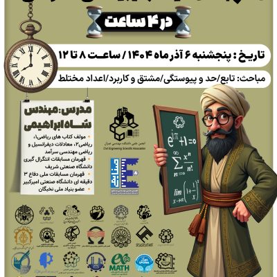 انجمن های علمی دانشگاه صنعتی امیرکبیر برگزار می کنند: کلاس جمع بندی میانترم ریاضی عمومی1 ویژه ورودی های 1404 دانشگاه…